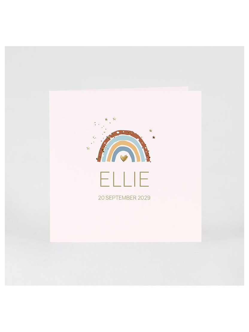 Pour annoncer la naissance de votre fille vous souhaitez une carte de naissance féérique ? Ce faire part naissance arc-en-ciel magique fille va vous plaire. Le prénom et les petits détails imprimés en doré s'accordent parfaitement pour allier douceur et chic.