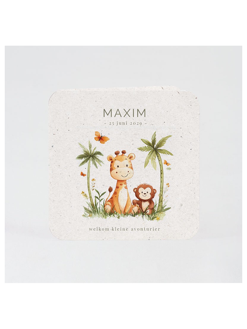 Les illustrations de cette annonce naissance aussi mignonnes que rigolotes raviront vos proches lorsqu'ils ouvriront l'enveloppe. Le look écologique de l'arrière-plan de cette carte donne un aspect vintage à votre annonce.