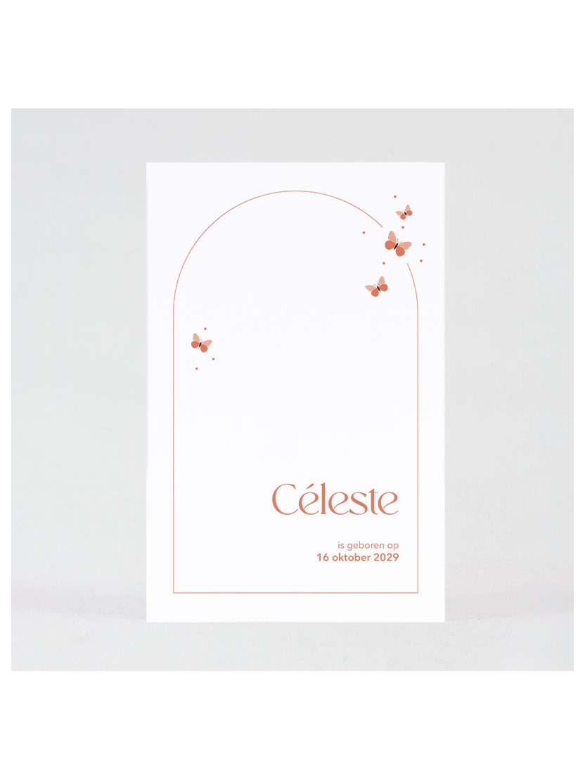 Sa discrétion et son graphisme moderne fait de ce faire-part naissance papillons et arche graphique l'atout chic de l'annonce de venue au monde de votre enfant. Le dos de la carte est réservé à votre texte.
